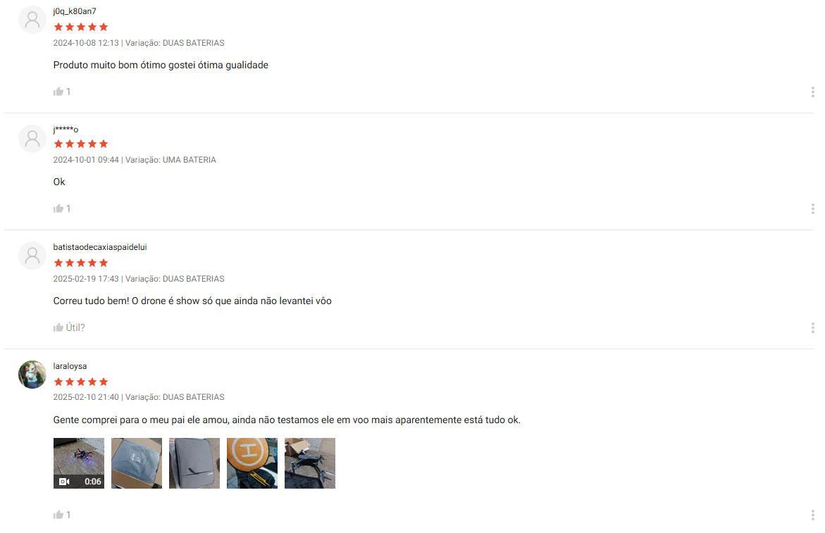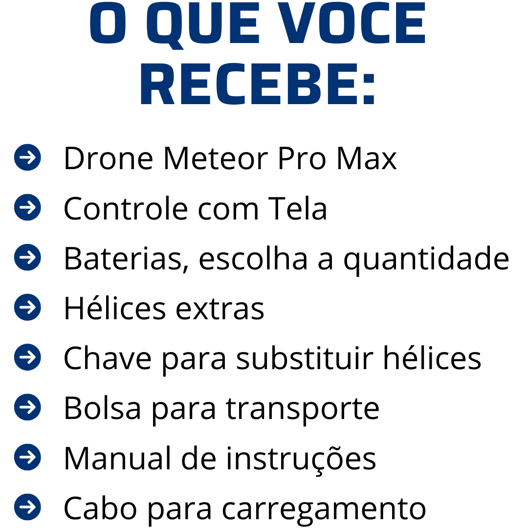 - Bateria do Controle Remoto: 3,7V 450mAh (recarregável e embutida)