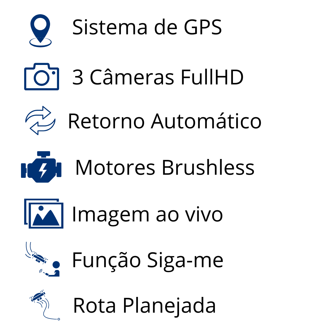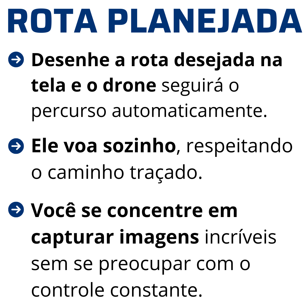 - Voo por Trajetória (desenhe a rota no aplicativo e o drone seguirá automaticamente)